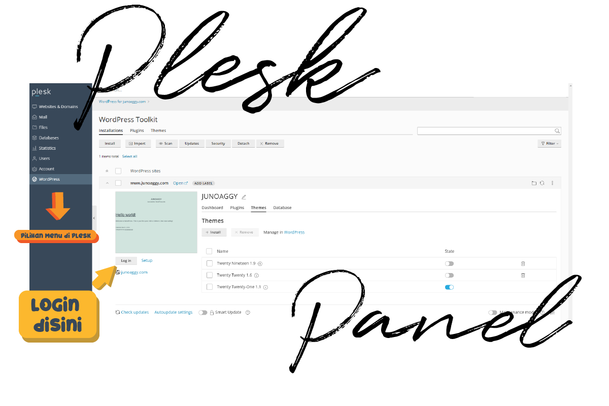 Voila! kalian udah masuk deh ke Plesk. Selanjutnya pilih menu Wordpress di sebelah kiri lalu pilih login. Kalian akan otomatis login ke dashboard wordpress kalian.